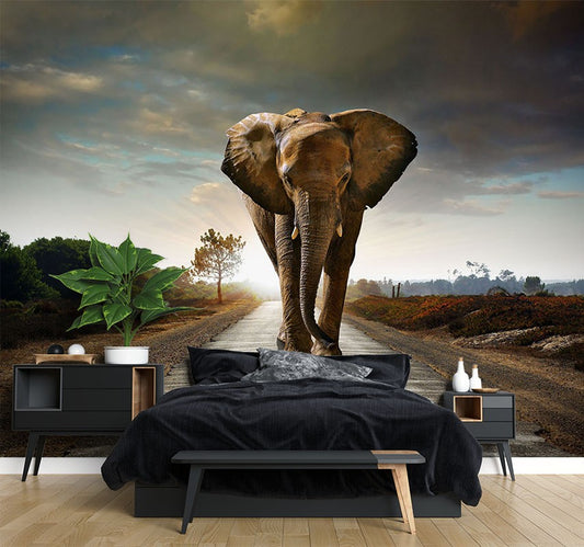 Elephant Road Animals Wild Animals Brown Wallpaper Mural,Self-Adhesive Peel And Stick 3D Wall Art,Designer Bedroom Wall Decor