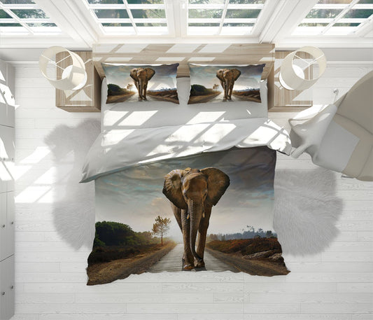 Elephant Road Animals Wild Animals Brown 3D Duvet Cover Set W Pillow Cover, Single Double Queen King Size, Printed Cotton Quilt Doona Cover