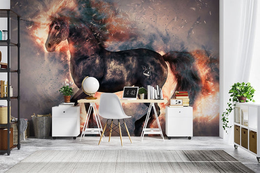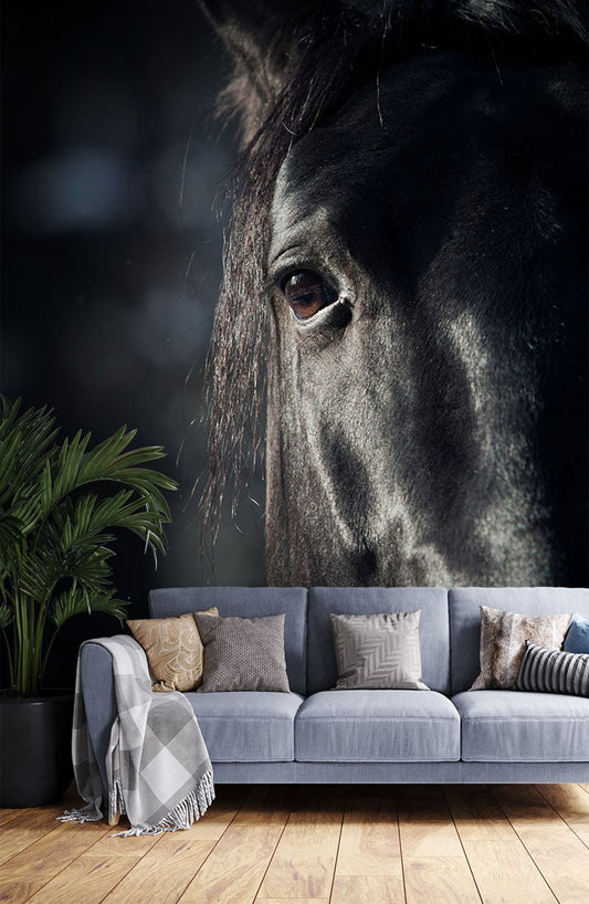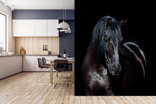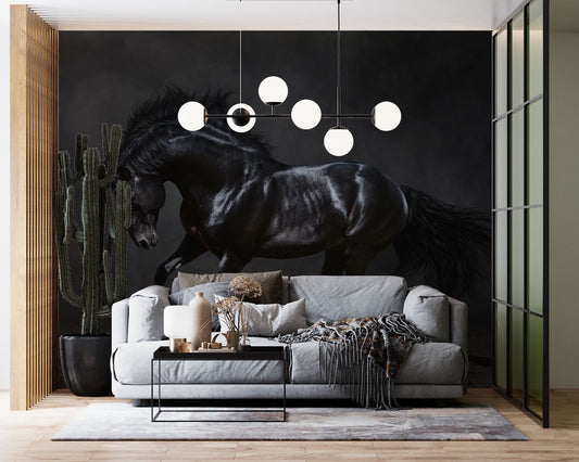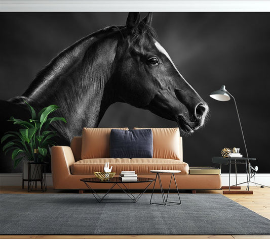 Black Horse Animals Horses Black Wallpaper Mural,Self-Adhesive Peel And Stick 3D Wall Decor,Australian Company Removable Wall Decor