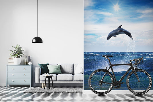 Leaping Dolphin Animals Sea Life Blue Wallpaper Mural,Self-Adhesive Peel And Stick 3D Wall Paper,Bedroom Australian Company Wall Decor