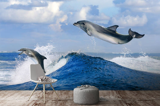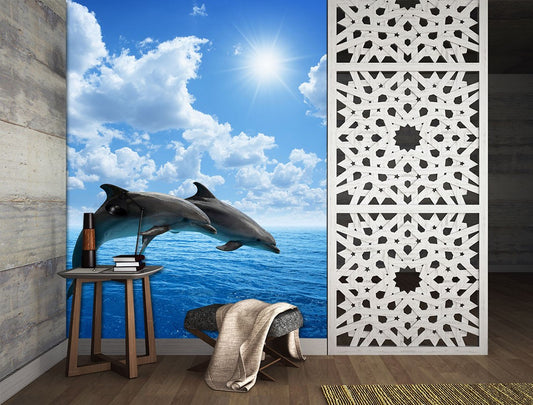 Dolphins Animals Sea Life Blue Wallpaper Mural,Self-Adhesive Peel And Stick 3D Wall Art,Removable Australian Company Wall Decor