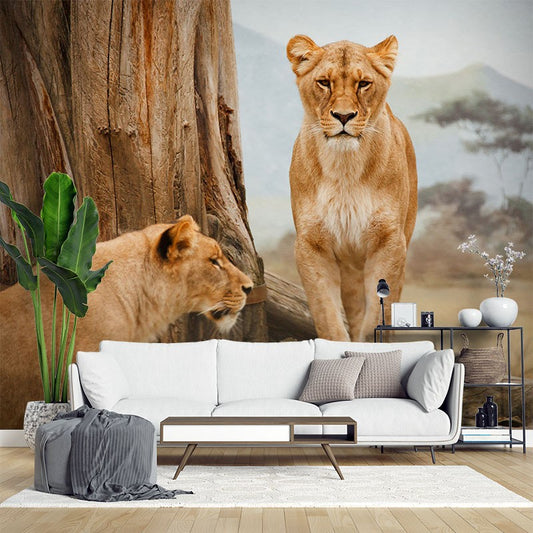 Lion African Animals Wild Animals Brown Wallpaper Mural,Self-Adhesive Peel And Stick 3D Wall Decal,Bedroom Designer Wall Decor
