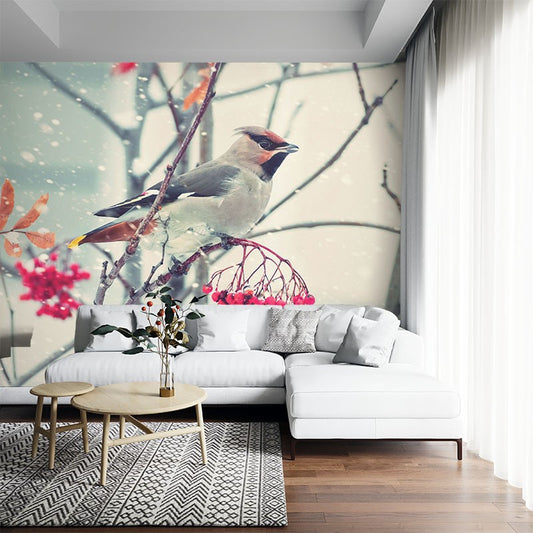 Bird Waxwing Animals Birds Brown Wallpaper Mural,Self-Adhesive Peel And Stick 3D Wall Decal,Bedroom Removable Wall Decor