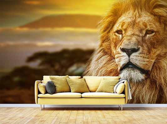 Lion Animals Wild Animals Yellow Wallpaper Mural,Self-Adhesive Peel And Stick 3D Wall Mural,Australian Company Bedroom Wall Decor