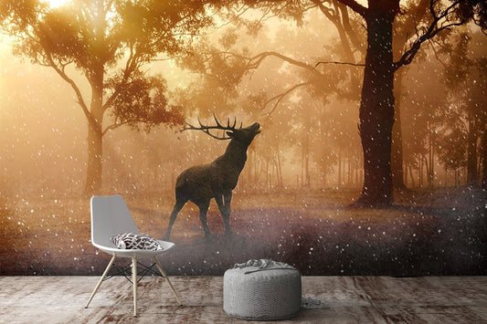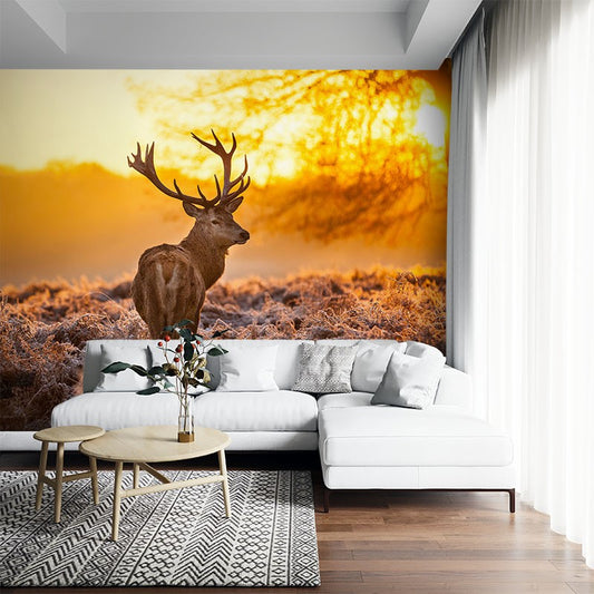 Elk Animals Wild Animals Gold Wallpaper Mural,Self-Adhesive Peel And Stick 3D Wall Art,Bedroom Removable Wall Decor