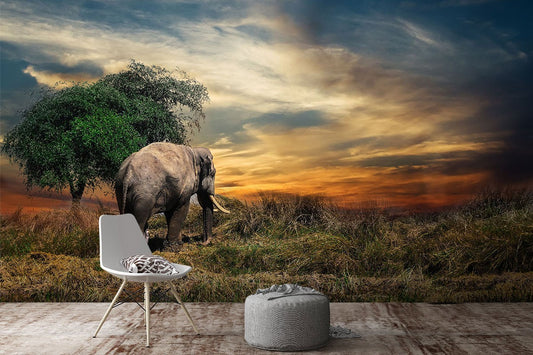Elephant Steppe Wild Animals Brown Wallpaper Mural,Self-Adhesive Peel And Stick 3D Wall Decal,Designer Removable Wall Decor