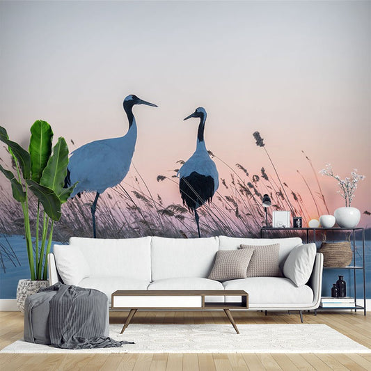 Crane Animals Birds Gray Wallpaper Mural,Self-Adhesive Peel And Stick 3D Wall Art,Australian Company Removable Wall Decor