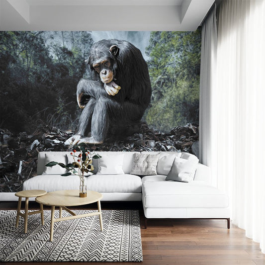 Chimpanzee Animals Wild Animals Black Wallpaper Mural,Self-Adhesive Peel And Stick 3D Wall Art,Designer Australian Company Wall Decor