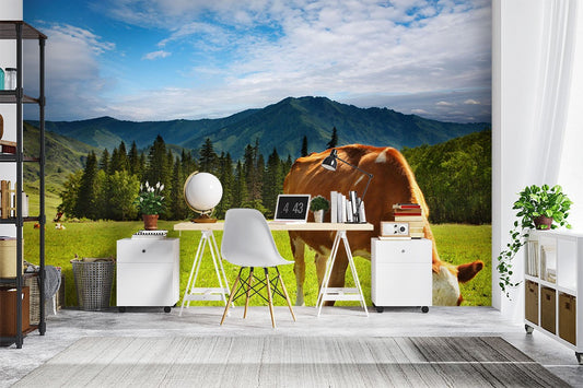 Cows Steppe Animals Farm Animals Green Wallpaper Mural,Self-Adhesive Peel And Stick 3D Wall Decor,Designer Australian Company Wall Decor