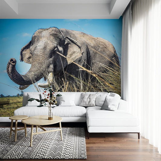 Elephant Steppe Wild Animals Gray Wallpaper Mural,Self-Adhesive Peel And Stick 3D Wall Art,Removable Designer Wall Decor