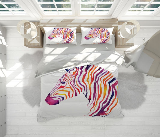 Colorful Zebra Duvet Cover Set W Pillow Cover, Purple Animals Wild Animals 3D Quilt Cover, Single Double Queen King Size Doona Cover