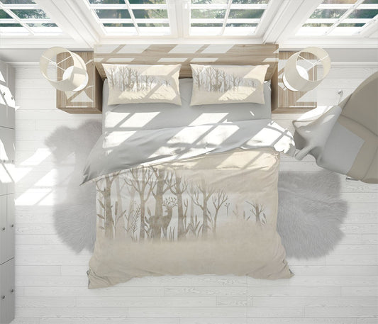 Deer Trees Duvet Cover Set W Pillow Cover, Green Animals Wild Animals 3D Quilt Cover, Single Double Queen King Size Doona Cover