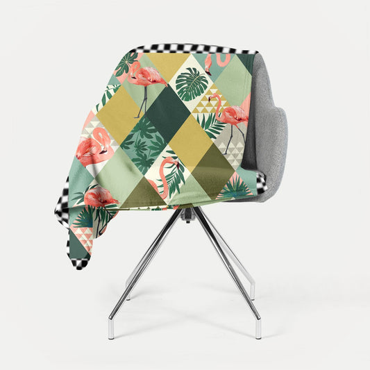 Flamingo Jungle Animals Birds Green Personalized Throw Blanket Custom Fleece Sherpa Throw