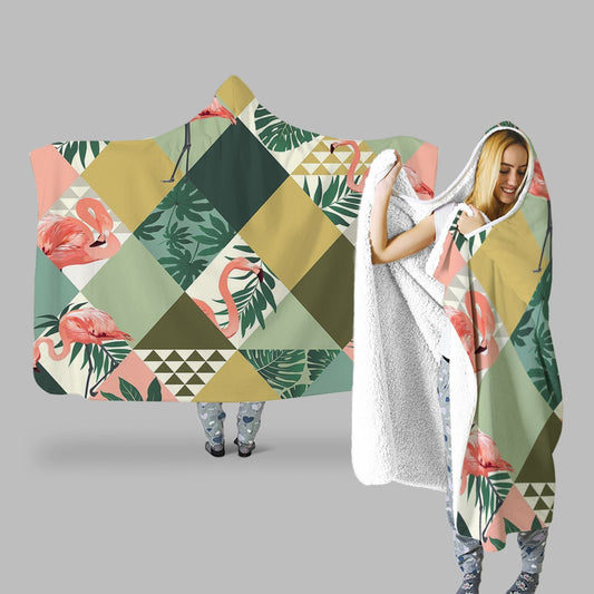 Flamingo Jungle Animals Birds Green Personalized Hooded Throw Blanket Fleece Hoodie Cape