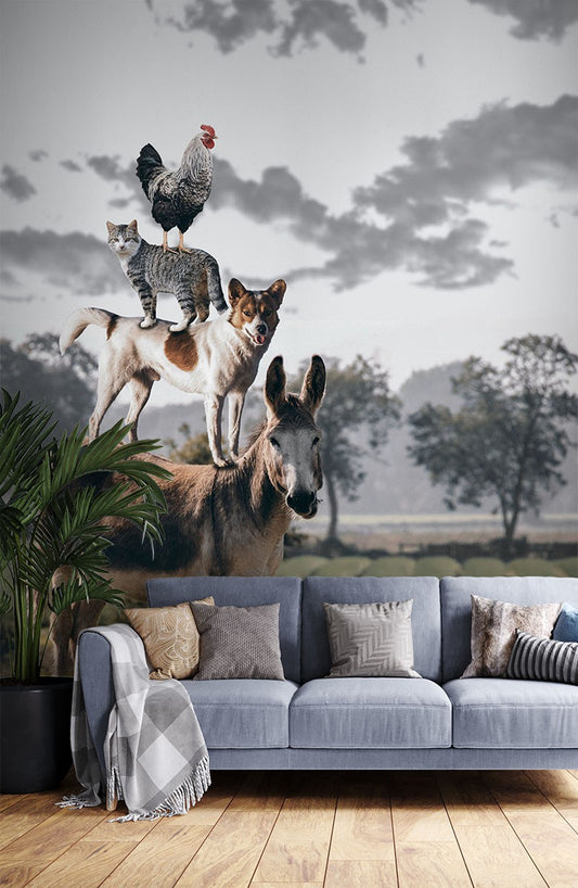 Ranch Animals Pets Bright Wallpaper Mural,Self-Adhesive Peel And Stick 3D Wall Decor,Designer Australian Company Wall Decor