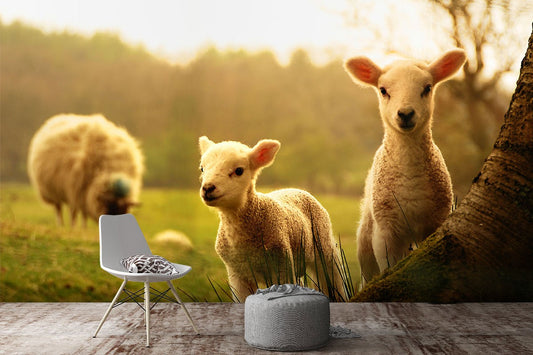Sheep Animals Farm Animals Gold Wallpaper Mural,Self-Adhesive Peel And Stick 3D Wall Decal,Australian Company Wall Decor