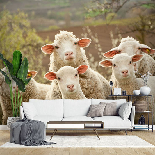 Sheep Animals Farm Animals White Wallpaper Mural,Self-Adhesive Peel And Stick 3D Wall Decor,Australian Company Bedroom Wall Decor