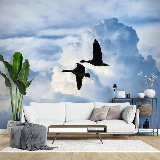 Wild Goose Animals Birds White Wallpaper Mural,Self-Adhesive Peel And Stick 3D Wall Paper,Removable Designer Wall Decor