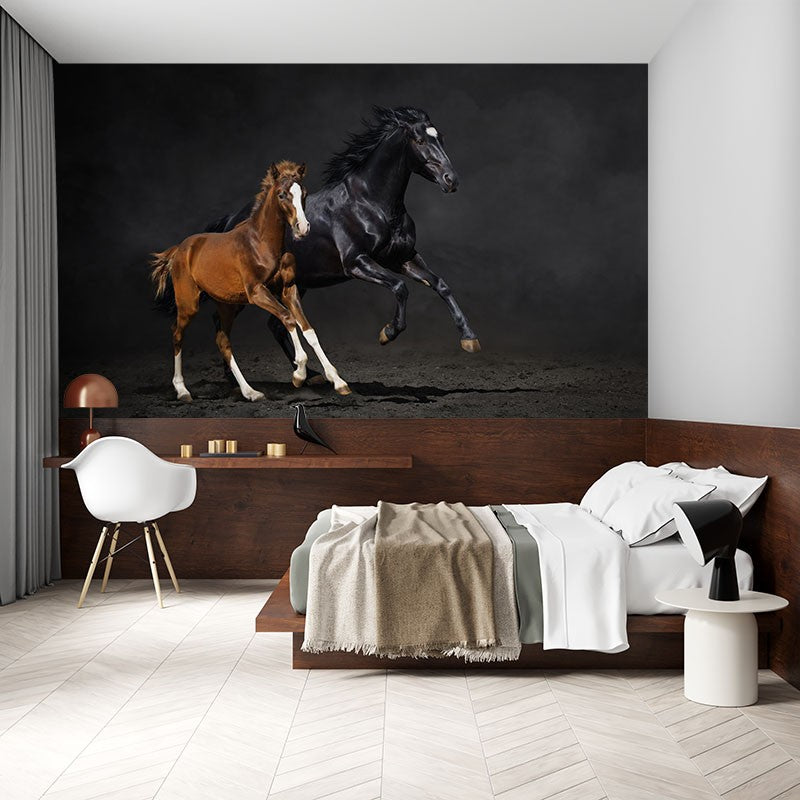 Horses Animals Black Wallpaper Mural,Self-Adhesive Peel And Stick 3D Wall Art,Australian Company Bedroom Wall Decor