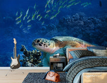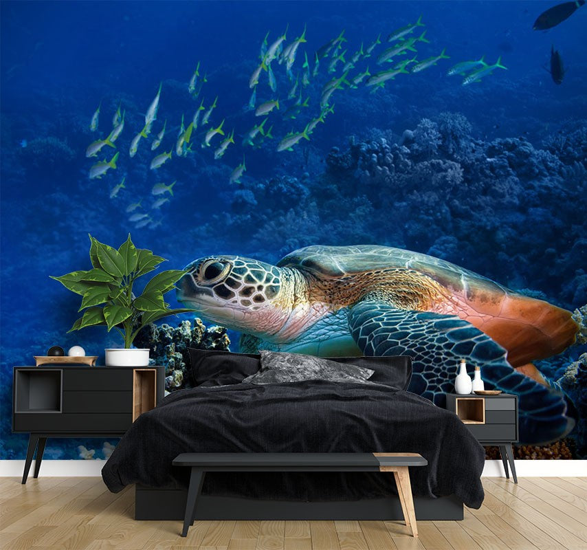Sea Turtle Animals Sea Life Blue Wallpaper Mural,Self-Adhesive Peel And Stick 3D Wall Art,Australian Company Bedroom Wall Decor