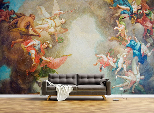 Angels Art Religious Multicolour Wallpaper Mural,Self-Adhesive Peel And Stick 3D Wall Paper,Designer Bedroom Wall Decor