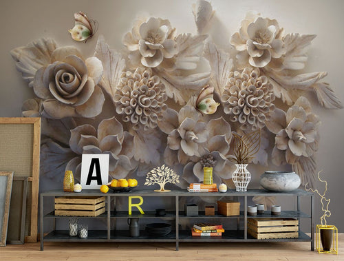 Dutch Flower Relief Art 3D Creamy Wallpaper Mural,Self-Adhesive Peel And Stick 3D Wall Mural,Designer Removable Wall Decor