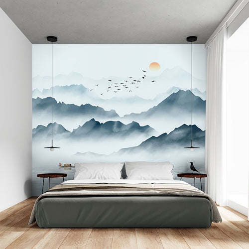 Misty Mountains Art Traditional Blue Wallpaper Mural,Self-Adhesive Peel And Stick 3D Wall Art,Bedroom Australian Company Wall Decor