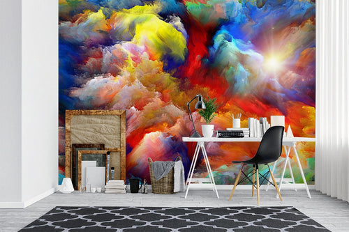 Colored Smoke Art Abstract Multicolour Wallpaper Mural,Self-Adhesive Peel And Stick 3D Wall Decor,Removable Australian Company Wall Decor
