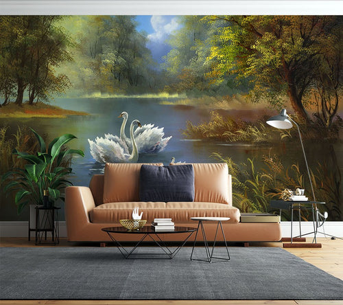 Swan Couple Art Traditional Bright Wallpaper Mural,Self-Adhesive Peel And Stick 3D Wall Decal,Bedroom Australian Company Wall Decor