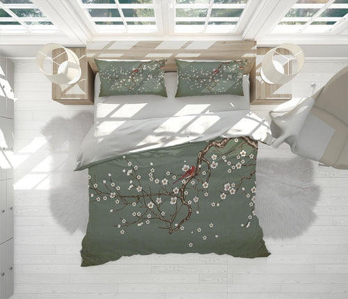 Blossom Illustration Art Duvet Cover Set w Pillowcases, Red Floral Patterns 3D Quilt Cover, 3pc Single Double Queen King Size Doona Cover