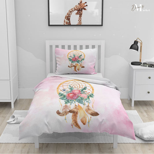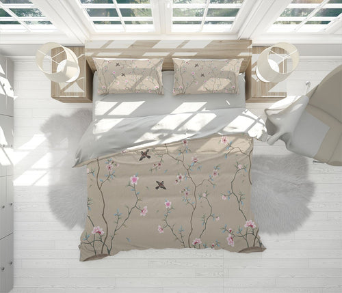 Watercolor Butterfly Flower Duvet Cover Set w Pillowcases, Pink Kids Cartoon 3D Quilt Cover, 3pc Single Double Queen King Size Doona Cover