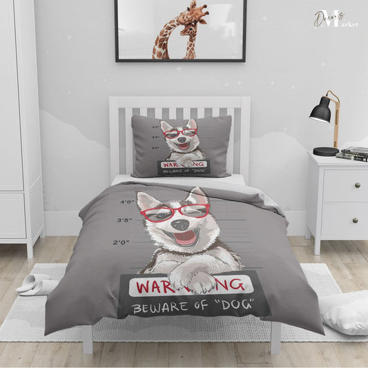 Deer Mouse Cute Duvet Cover Set w Pillow Cover, Gray Kids Cartoon 3D Quilt Cover, Single Double Queen King Size Doona Cover