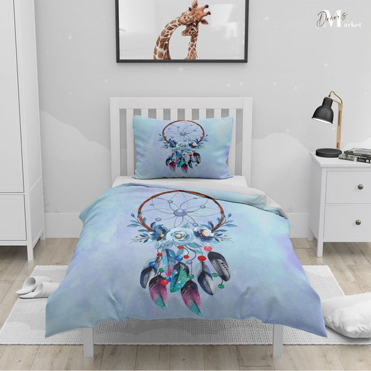 Flying Teddy Bear Duvet Cover Set w Pillow Cover, Blue Art Watercolor 3D Quilt Cover, Single Double Queen King Size Doona Cover