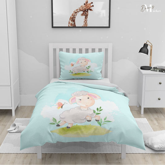 Sheep Run Butterfly Duvet Cover Set w Pillow Cover, Blue Kids Cartoon 3D Quilt Cover, Single Double Queen King Size Doona Cover