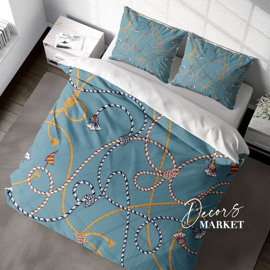 Cartoon Sail Boats Duvet Cover Set w Pillowcases, Blue Kids Cartoon 3D Quilt Cover, 3pc Single Double Queen King Size Doona Cover