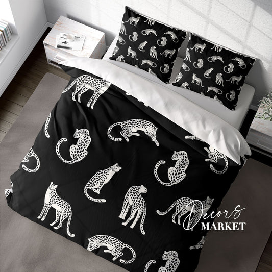Leopard Spot Duvet Cover Set w Pillowcases, Black&White Art Fantasy 3D Quilt Cover, 3pc Single Double Queen King Size Doona Cover