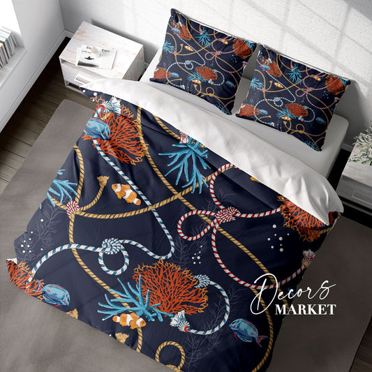 Ocean Submarine Fish Duvet Cover Set w Pillowcases, Colorful Kids Cartoon 3D Quilt Cover, 3pc Single Double Queen King Size Doona Cover