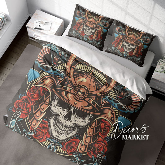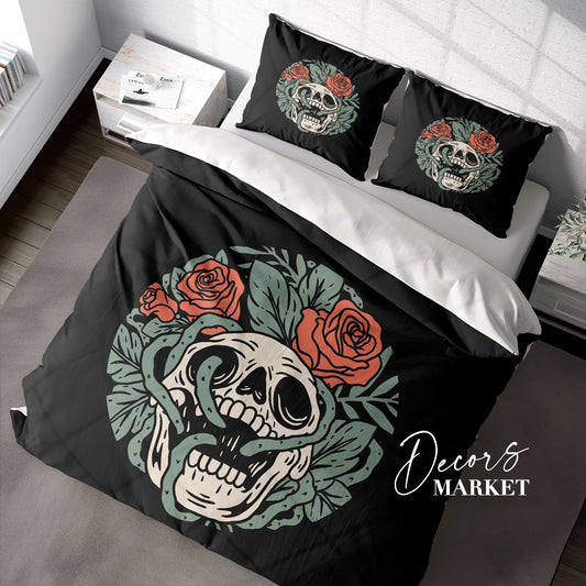 Skeleton Rose Snake Duvet Cover Set w Pillowcases, Colorful Art Fantasy 3D Quilt Cover, 3pc Single Double Queen King Size Doona Cover