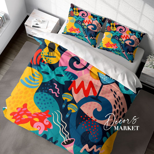Ax Monster Duvet Cover Set w Pillowcases, Colorful Art Fantasy 3D Quilt Cover, 3pc Single Double Queen King Size Doona Cover