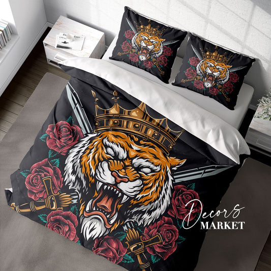 Lion Crown Knife Duvet Cover Set w Pillowcases, Orange Art Fantasy 3D Quilt Cover, 3pc Single Double Queen King Size Doona Cover