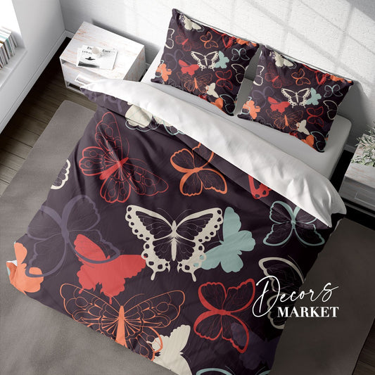 Butterfly Red Duvet Cover Set w Pillowcases, Colorful Art Fantasy 3D Quilt Cover, 3pc Single Double Queen King Size Doona Cover