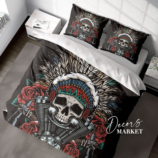 Skeleton Rose Duvet Cover Set w Pillowcases, Colorful Art Fantasy 3D Quilt Cover, 3pc Single Double Queen King Size Doona Cover