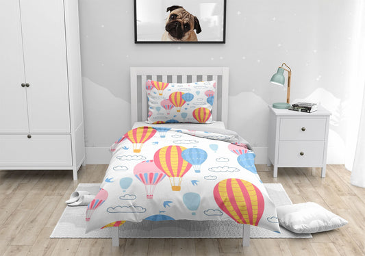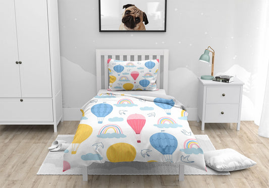 Sky Balloon Pattern Duvet Cover Set w Pillowcases, Colorful Kids Cartoon 3D Quilt Cover, 3pc Single Double Queen King Size Doona Cover