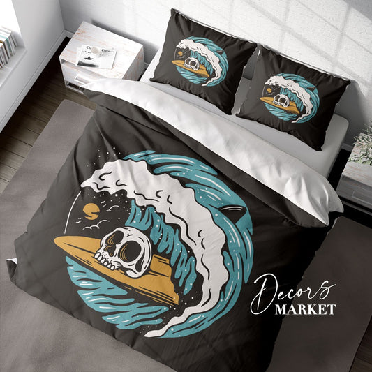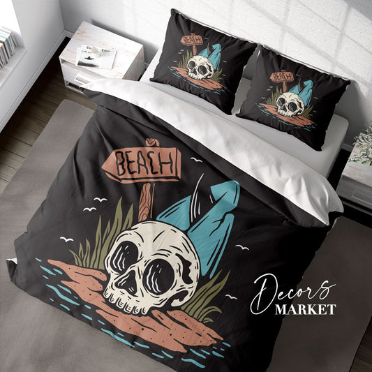 Beach Skeleton Duvet Cover Set w Pillowcases, Blue Art Fantasy 3D Quilt Cover, 3pc Single Double Queen King Size Doona Cover