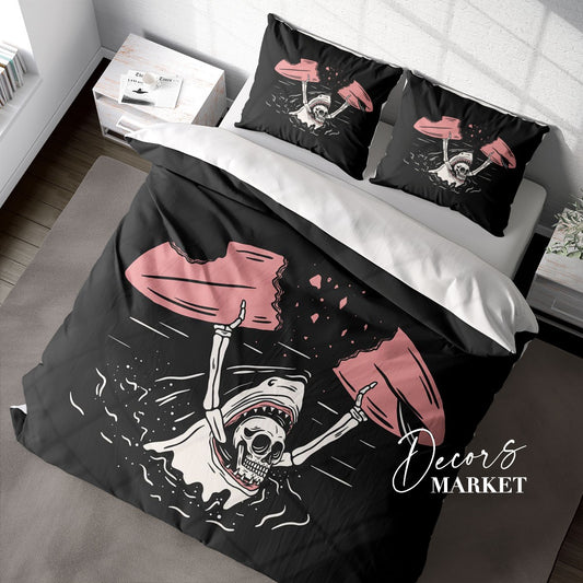Sampan Skeleton Duvet Cover Set w Pillowcases, Pink Art Fantasy 3D Quilt Cover, 3pc Single Double Queen King Size Doona Cover