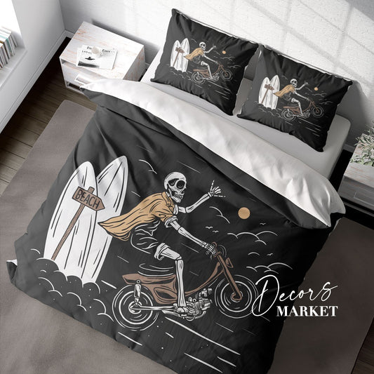 Motor Skeleton Duvet Cover Set w Pillowcases, Orange Art Fantasy 3D Quilt Cover, 3pc Single Double Queen King Size Doona Cover