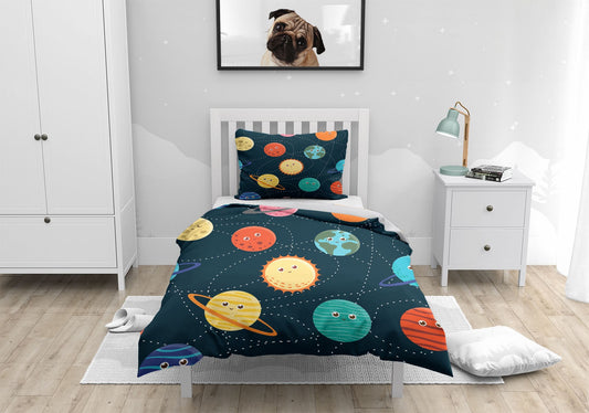 Universe Planet Earth Duvet Cover Set w Pillowcases, Blue Kids Cartoon 3D Quilt Cover, 3pc Single Double Queen King Size Doona Cover