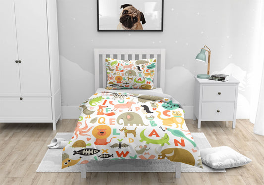 Zoo Cute Animals Duvet Cover Set w Pillowcases, Colorful Kids Cartoon 3D Quilt Cover, 3pc Single Double Queen King Size Doona Cover