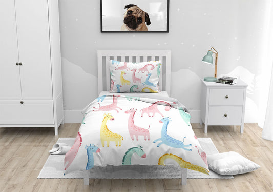 Watercolor Cute Giraffe Duvet Cover Set w Pillowcases, Creamy Kids Cartoon 3D Quilt Cover, 3pc Single Double Queen King Size Doona Cover