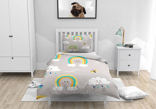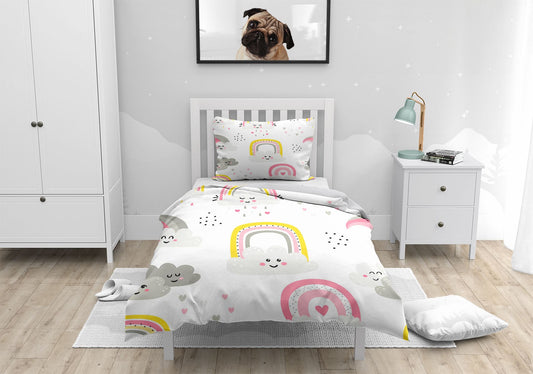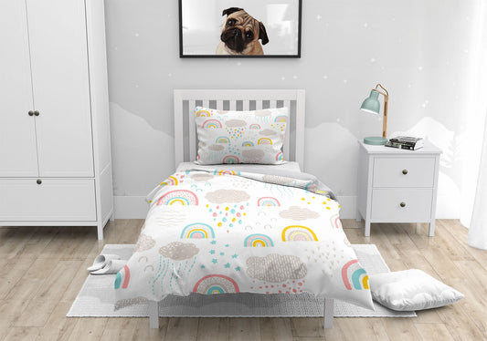 Sky Clouds Rainbow Duvet Cover Set w Pillowcases, Creamy Kids Cartoon 3D Quilt Cover, 3pc Single Double Queen King Size Doona Cover